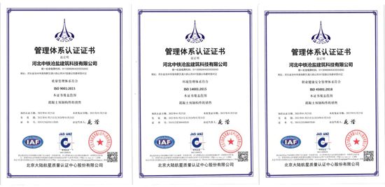 自去年投產(chǎn)以來,中鐵滄鹽科技創(chuàng)新喜報(bào)不斷,捷報(bào)頻傳,先后取得11項(xiàng)實(shí)用新型專利、3項(xiàng)發(fā)明專利、7項(xiàng)3A信用評(píng)價(jià)證書。繼2020年11月獲得河北省科學(xué)技術(shù)廳評(píng)選的河北省創(chuàng)新型中小企業(yè)的稱號(hào)后,通過積極的管理謀劃布局,2021年1月取得質(zhì)量體系、環(huán)境管理體系、職業(yè)健康三大體系ISO9001認(rèn)證;2021年8月通過了全國(guó)高新技術(shù)企業(yè)認(rèn)定管理工作領(lǐng)導(dǎo)小組評(píng)選,獲批河北省2021年第一批高新技術(shù)企業(yè)認(rèn)證。2021年9月,公司按照河北省工信廳被動(dòng)式超低能耗建筑產(chǎn)業(yè)項(xiàng)目的文件要求,深度研究政策要求、全面匯總編寫課題資料,通過了工信廳第三方專家技術(shù)評(píng)審和外部財(cái)務(wù)審計(jì)等工作,被順利列入河北省工信廳被動(dòng)式超低能耗建筑產(chǎn)業(yè)項(xiàng)目合格名單,納入政府資金滾動(dòng)支持項(xiàng)目庫。