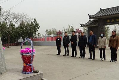 黨員職工們首先參觀了曹莊子村村支部,聽取曹莊子村革命歷史,參觀了曹莊子村烈士陵園,并向革命烈士敬獻了花籃。烈士陵園工作人員還對革命烈士的事跡進行了講解。