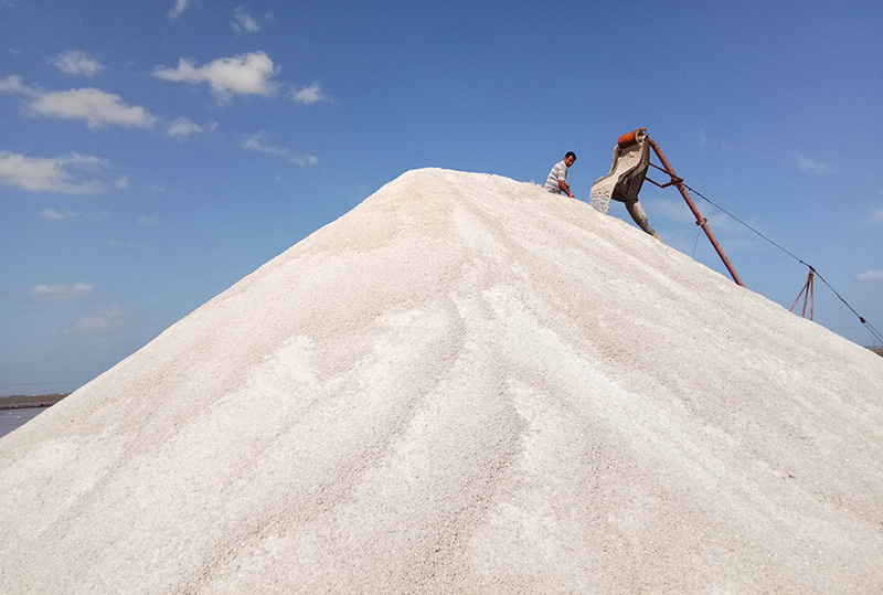 自入秋以來,長蘆鹽業(yè)公司努力克服8月中旬超強臺風(fēng)、特大暴雨對生產(chǎn)的毀滅性影響,廣泛發(fā)動全體黨員、干部職工以管理升級為動力,抓住天時加班加點,激情工作。在生產(chǎn)方面,晝夜加班維修鹽田促鹵水排隊,快制飽和鹵促換池秋曬,因地制宜進行部分退池保大面積正常結(jié)晶長鹽,較快恢復(fù)了正常生產(chǎn)。進入9月中旬,長蘆鹽業(yè)公司經(jīng)過深入考察市場,結(jié)合自身生產(chǎn)實際,決定提前進行秋扒工作。經(jīng)過全面的安全三級教育培訓(xùn)、質(zhì)量學(xué)習(xí)培訓(xùn)、物料儲備等一系列精心準備,9月16日秋扒全面展開,這也標志著一年中的秋曬和秋扒工作進入到最關(guān)鍵階段。
