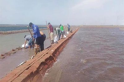 為了確保安全渡過此次天氣過程,長蘆公司領(lǐng)導(dǎo)與防汛辦公室人員深入到各單元、重點部位、關(guān)鍵閘涵,對片淡、塑苫防風、排淡情況進行現(xiàn)場檢查。各單元也加強24小時巡查,防止池埝、護灘埝發(fā)生險情,保障排淡及時正常進行。