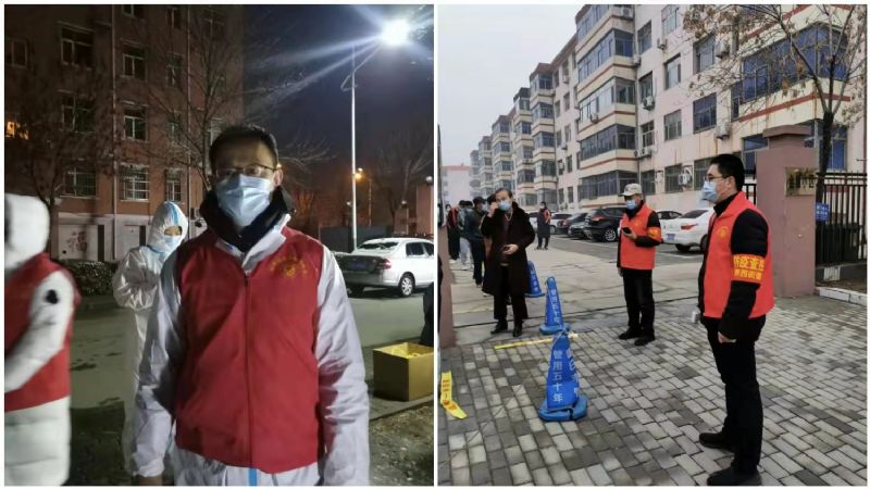 “一夜之間封控了,首先感到的是恐慌,可是,做為共產(chǎn)黨員的我,感受到了疫情的嚴(yán)峻,疫情就是沖鋒號,我第一時間就是給社區(qū)打電話,報名加入志愿者,加入戰(zhàn)斗”保衛(wèi)部職工陳寶龍第一時間在渤海新區(qū)紅郡小區(qū)參加了疫情防控志愿服務(wù)。