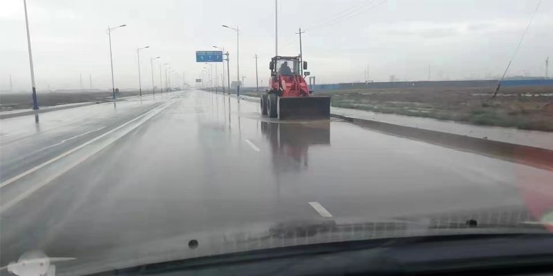 由于正值雨季,臨港東區(qū)施工路段路面殘留大量泥土,因工程車輛較多,很難去除干凈。工程公司為切實(shí)加強(qiáng)雨季道路交通安全,全力消除交通安全隱患,確保道路通暢,組織一線職工一邊用鏟車清理道路淤泥,一邊用灑水車進(jìn)行沖洗。