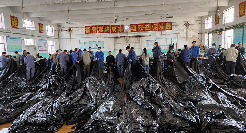 節(jié)日期間,工貿(mào)公司上下齊心協(xié)力,從班子、其他車間職工到工勤崗位全員出動,主動放棄休息,在保證安全生產(chǎn)和完善疫情防控的要求下,加班生產(chǎn)。為了降低職工勞動強度,技術研發(fā)部門通過多次改進,設計制造出了塑苫傳送裝置,大大節(jié)約了人力成本,提高了配送效率。