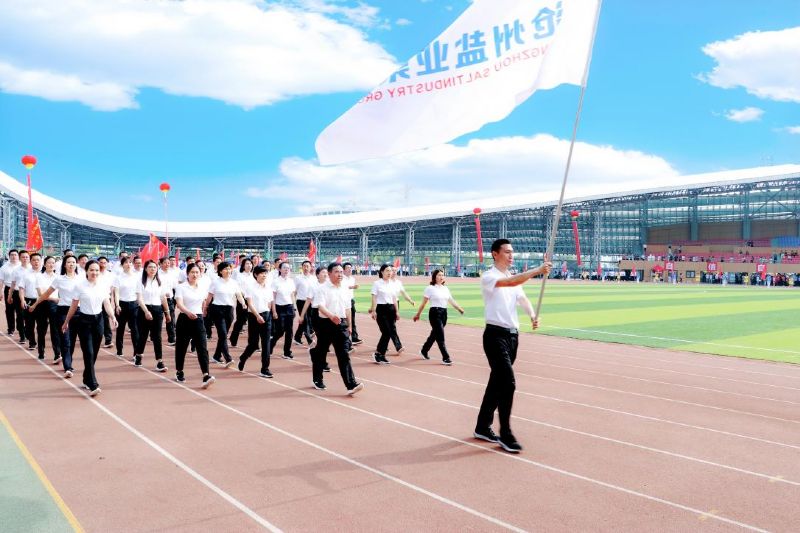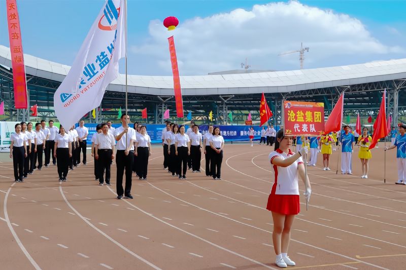 入場(chǎng)式中,我公司代表方陣高舉滄鹽集團(tuán)旗幟,踏著激昂的運(yùn)動(dòng)員進(jìn)行曲,高喊“滄鹽滄鹽勇往直前”,邁著整齊而有力的步伐走過(guò)主席臺(tái),充分展現(xiàn)了滄鹽集團(tuán)干部職工良好的精神風(fēng)貌。