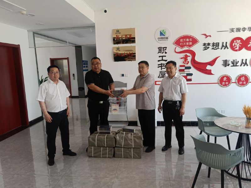 中鐵滄鹽書(shū)屋在市級(jí)職工書(shū)屋示范點(diǎn)建設(shè)工作中表現(xiàn)突出,喜獲滄州市總工會(huì)贈(zèng)書(shū)殊榮。近日,工會(huì)主席李金營(yíng)帶隊(duì)到中鐵滄鹽有限公司,親自將贈(zèng)書(shū)轉(zhuǎn)交至中鐵滄鹽公司。