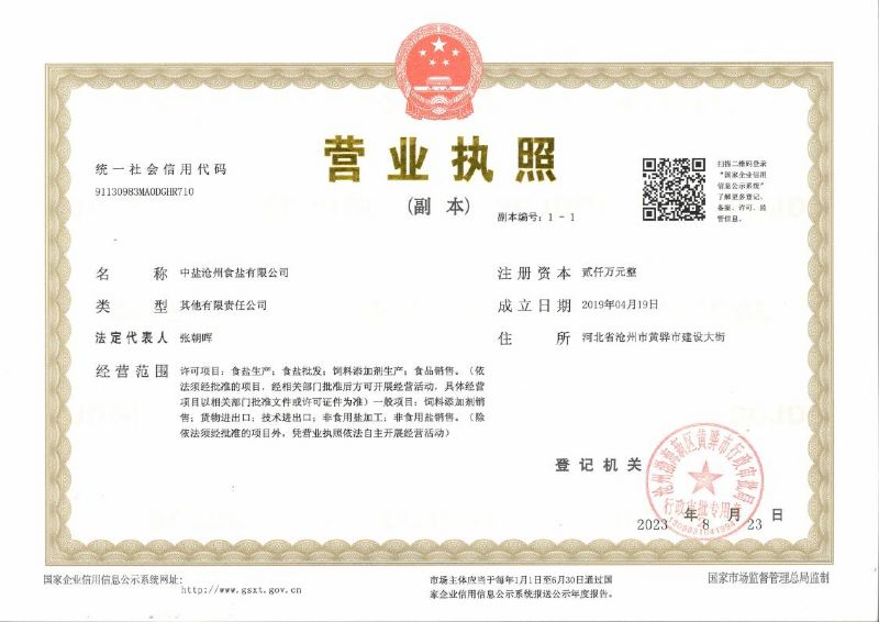 8月23日,中鹽滄州食鹽有限公司在渤海新區(qū)黃驊市成功注冊(cè)成立。中鹽滄州食鹽項(xiàng)目是滄州鹽業(yè)集團(tuán)公司深入學(xué)習(xí)貫徹習(xí)近平總書記視察河北重要講話精神,落實(shí)央企落戶河北戰(zhàn)略舉措的重要成果,是落戶河北的第一家中央企業(yè)。