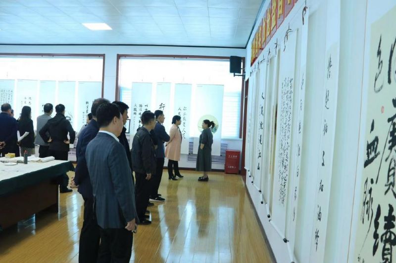 此次書畫展以習(xí)近平總書記的金句語錄和黨的二十大報告中的重要論述為主要內(nèi)容,以傳承和弘揚中國傳統(tǒng)書畫藝術(shù)為手段,以筆抒懷,用筆抒情,共計收到在職干部職工、退休干部職工作品40余幅,經(jīng)過嚴(yán)格篩選,共有28幅作品參加展覽。開展當(dāng)日,吸引了100多名干部職工參觀學(xué)習(xí),部分書畫愛好者還現(xiàn)場揮毫潑墨,與干部職工共同交流創(chuàng)作心得。