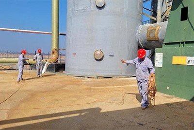 走進(jìn)廠區(qū),機(jī)器的轟鳴聲交織成一曲獨(dú)特的生產(chǎn)交響樂。在溴素生產(chǎn)氣化區(qū)、富集區(qū)、提取車間,生產(chǎn)帶班長正認(rèn)真地盯著各項(xiàng)數(shù)據(jù)指標(biāo)的變化,仔細(xì)進(jìn)行記錄和分析,每一個(gè)細(xì)微的參數(shù)變動(dòng)都逃不過他的眼睛。班組長陳金浩說:“吹溴工藝的化工生產(chǎn)過程需要時(shí)刻保持精神專注,不能有絲毫的懈怠馬虎,不然會(huì)大大影響溴的生產(chǎn)質(zhì)量和產(chǎn)量。雖然很希望與家人一起團(tuán)聚,但在這個(gè)崗位上就要履行好自己的工作職責(zé)!必(fù)責(zé)設(shè)備維護(hù)的老黨員李兆峰師傅也沒有休息,他帶領(lǐng)著維修團(tuán)隊(duì)不停穿梭在各個(gè)設(shè)備之間,仔細(xì)地巡檢、認(rèn)真查看各種泵類、閥門、流量計(jì)等設(shè)備運(yùn)轉(zhuǎn)情況。他們拿著工具,有條不紊地?cái)Q緊每一顆螺絲、擦拭每一個(gè)零件。兆峰師傅表示:“設(shè)備的正常運(yùn)行是整個(gè)溴素生產(chǎn)的關(guān)鍵,更是安全生產(chǎn)的屏障,我們多付出一點(diǎn),生產(chǎn)就多一份保障,不能因?yàn)槭枪?jié)日就放松對設(shè)備的檢查維護(hù)!