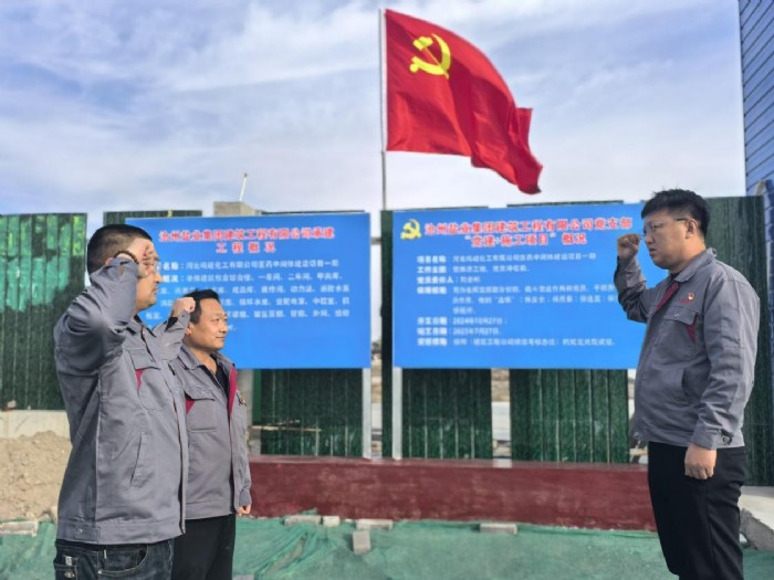 河北鳴岐化工有限公司醫(yī)藥中間體建設(shè)項目,一期工程項目金額5400余萬元,2024年10月6日正式進場施工,同時“黨旗進工地”也在同步開展。建筑公司黨支部嚴(yán)格“四制管理”,督促落實“五保措施”,和項目黨建負(fù)責(zé)人簽訂責(zé)任書。施工現(xiàn)場設(shè)立黨員示范崗,明確崗位職責(zé)和標(biāo)準(zhǔn),讓黨員在工作中有清晰的行動目標(biāo)。在實際工作中,黨員們以身作則,作為項目管理人員,無論是在施工工藝的把控上,還是在工作效率的提升上,都展現(xiàn)出高標(biāo)準(zhǔn)、嚴(yán)要求的工作態(tài)度,充分發(fā)揮黨員的先鋒模范作用。