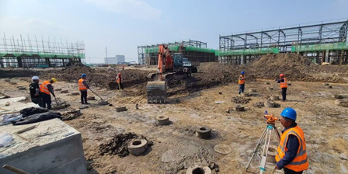 建筑工程公司為確保項(xiàng)目施工進(jìn)度,節(jié)前召開專題會(huì)議,對(duì)“五一”期間的施工任務(wù)進(jìn)行詳細(xì)安排,制定了科學(xué)合理的施工計(jì)劃。鳴歧項(xiàng)目為了提高施工進(jìn)度,利用晚上時(shí)間進(jìn)土,晝夜奮戰(zhàn),保障了各個(gè)施工單體及場(chǎng)地基礎(chǔ)回填用土需要,假期期間進(jìn)土1萬余方,為后續(xù)施工進(jìn)度奠定了堅(jiān)實(shí)基礎(chǔ)。為確保長(zhǎng)蘆鹽業(yè)公司泵站工程順利推進(jìn),工程技術(shù)部調(diào)配技術(shù)骨干班組,開啟了全天候奮戰(zhàn)模式。截至目前,鳴歧項(xiàng)目一、二車間基礎(chǔ)墻砌筑、圈梁澆筑已完成;港城填方項(xiàng)目已完成噴砂區(qū)填方并通過驗(yàn)收,其他項(xiàng)目正在加快推進(jìn)中。