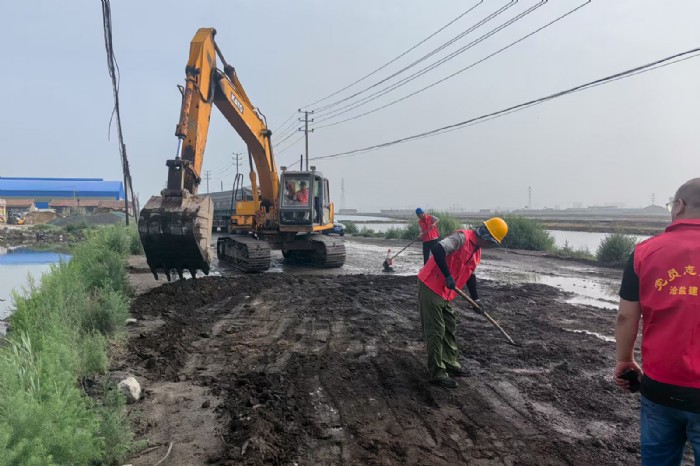 連日來,強降雨持續(xù)不斷,為道路鋪設帶來很大的困難, 施工負責人現(xiàn)場指揮督導,職工們一邊下管排水一邊鋪設道 路,將“工期意識 ”、“責任意識 ”融入每一個施工細節(jié), 在保證工程質(zhì)量和施工安全的前提下,全力以赴加快臨道鋪 設速度。