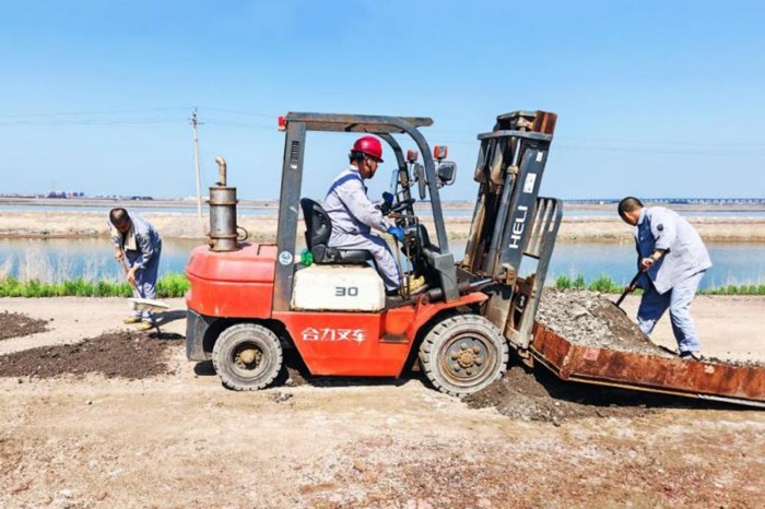 長(zhǎng)蘆公司制鹵二工區(qū)第六泵站通往溴素有限公司溴素三廠的路段因強(qiáng)降雨沖刷,路面坑洼遍布、積水橫流,車(chē)輛、人員顛簸難行,既給職工上下班及原料運(yùn)輸帶來(lái)極大不便,也埋下了安全隱患。群眾所盼,行動(dòng)所向。7月18日,溴素三廠10余名黨員干部及骨干組建了突擊隊(duì),備齊鐵鍬、砂石料、叉車(chē)等工具設(shè)備,對(duì)該路段進(jìn)了修補(bǔ)。