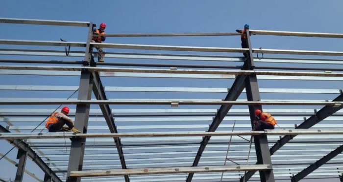 同時(shí),施工科合理調(diào)配資源,根據(jù)作業(yè)高度及高空人員體力消耗,采用“兩班倒”作業(yè)模式,在保障人員休息的前提下延長有效作業(yè)時(shí)間。截至9月26日,鋼結(jié)構(gòu)高空作業(yè)工程全部完成,較原計(jì)劃提前3天,為后續(xù)屋面施工、設(shè)備安裝等工序創(chuàng)造了有利條件。