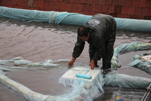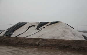 災(zāi)情發(fā)生后,公司領(lǐng)導(dǎo)第一時(shí)間趕赴受災(zāi)現(xiàn)場,組織全體干部職工進(jìn)行抗災(zāi)自救。各制鹽場不等不靠,斗志不減,搶排淡水,搶修塑苫。在不到一天的時(shí)間里,可修復(fù)的塑苫就初步搶修完畢,為6月8日和9日的雷雨天氣做好了充分準(zhǔn)備。雖然8日強(qiáng)對流天氣沒有降雨,但短時(shí)大風(fēng)又使6日已受災(zāi)損傷的鹽碼苫封材料再次受創(chuàng),一線干部職工又加緊搶修,保證了苫膜的度雨能力。
