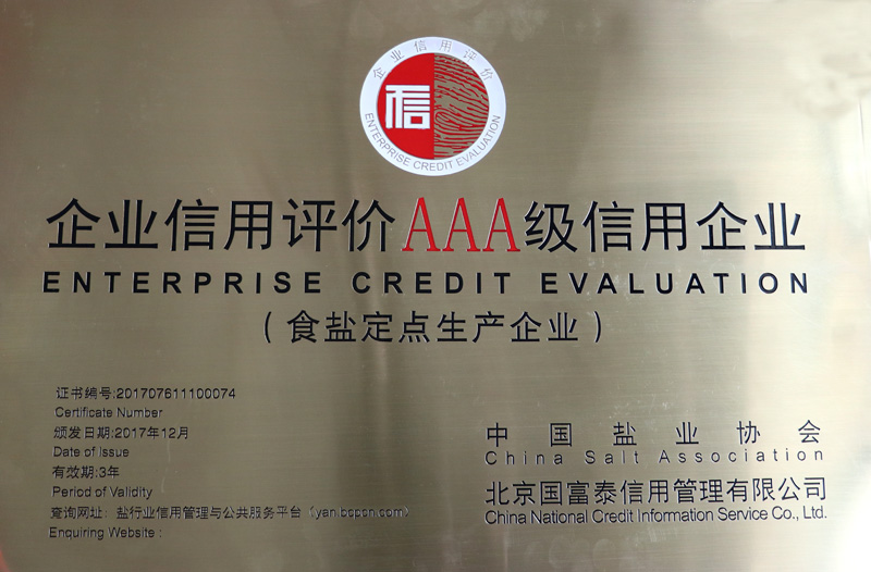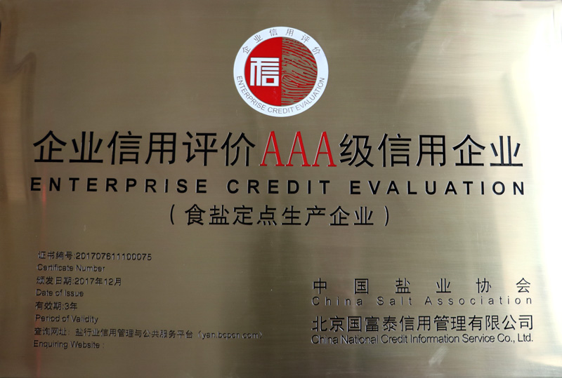此次評定是經(jīng)第三方專業(yè)評價機構(gòu)嚴格評價和中國鹽業(yè)企業(yè)信用等級評價委員會審核,并通過向社會公示無異議,評定出56家AAA級食鹽定點生產(chǎn)企業(yè)。