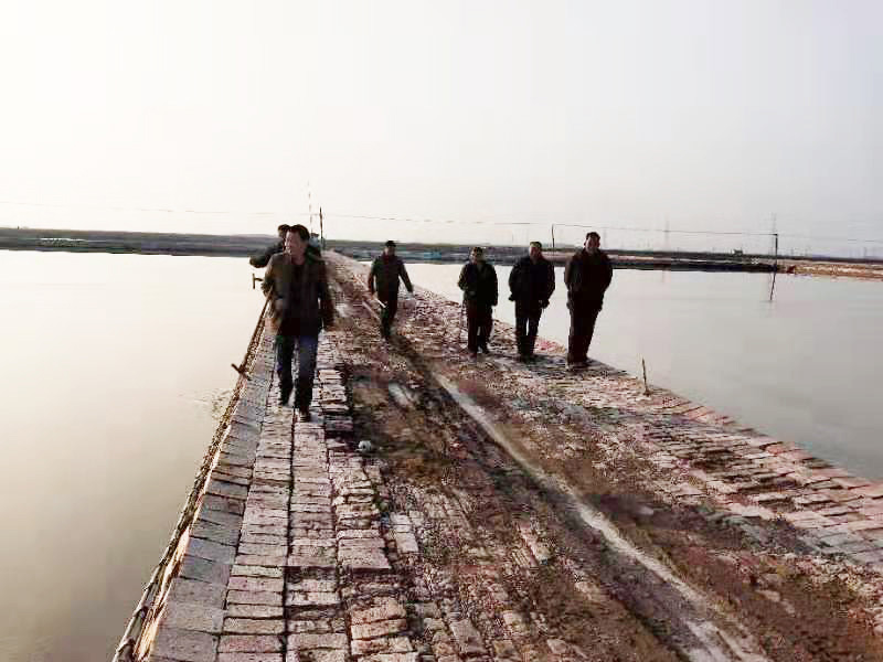 在抓好制鹵的同時(shí),各制鹽隊(duì)利用氣溫高時(shí),組織全員突擊進(jìn)行塑苫維修。灘田維修與制鹵工區(qū)汪子埝維修工作也于3月5日基本結(jié)束。制鹽四五六工區(qū)爭(zhēng)分奪秒,對(duì)技改池的后續(xù)砸樁、上滑道、設(shè)備安裝等工作進(jìn)行突擊,確保在4月下旬技改池塑苫全部能正常收放。3月10日晚,一場(chǎng)降雨不期而至,廣大一線(xiàn)職工全部在崗,低溫下對(duì)部分具備拉放條件的塑苫進(jìn)行了雨前拉塑,冒雨片淡,雨后趕重鹵恢復(fù)生產(chǎn),把損失降到最低。