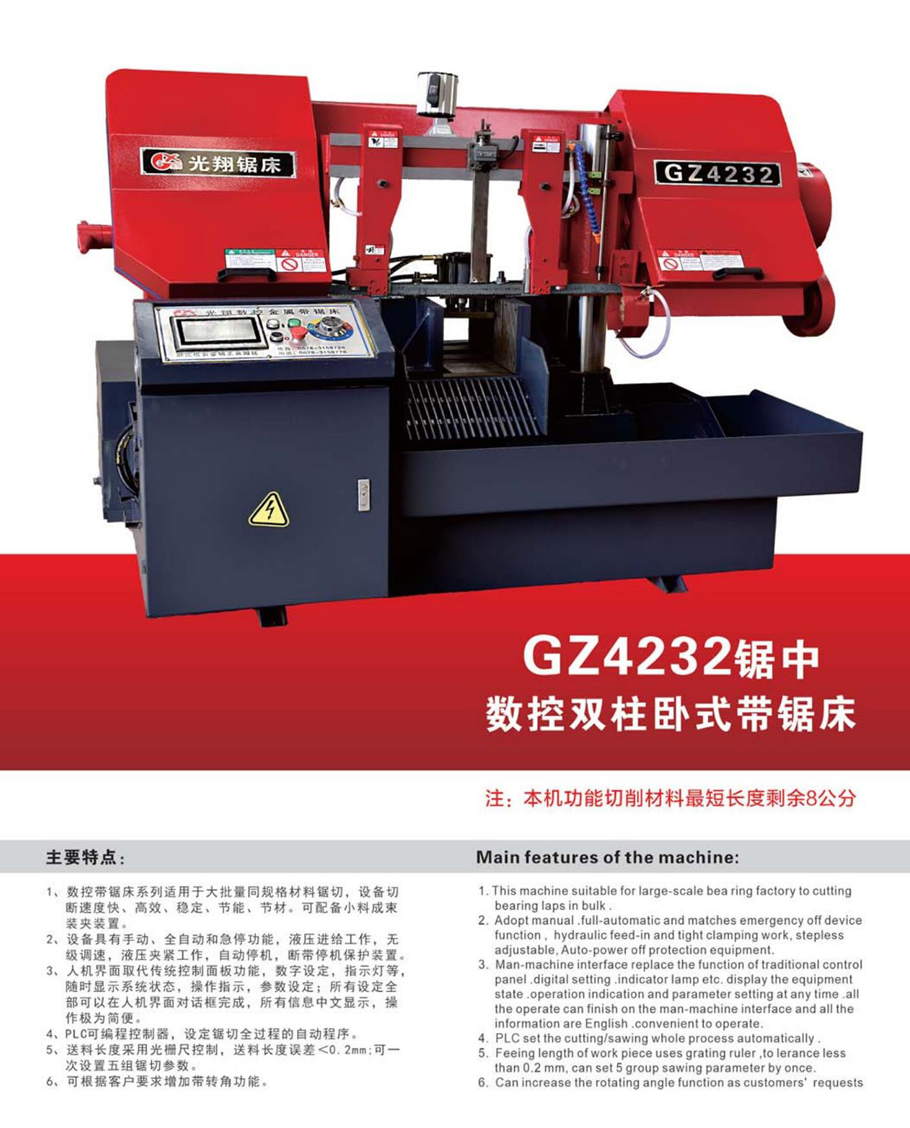 數(shù)控雙柱臥式帶鋸床(GZ4232鋸中)
